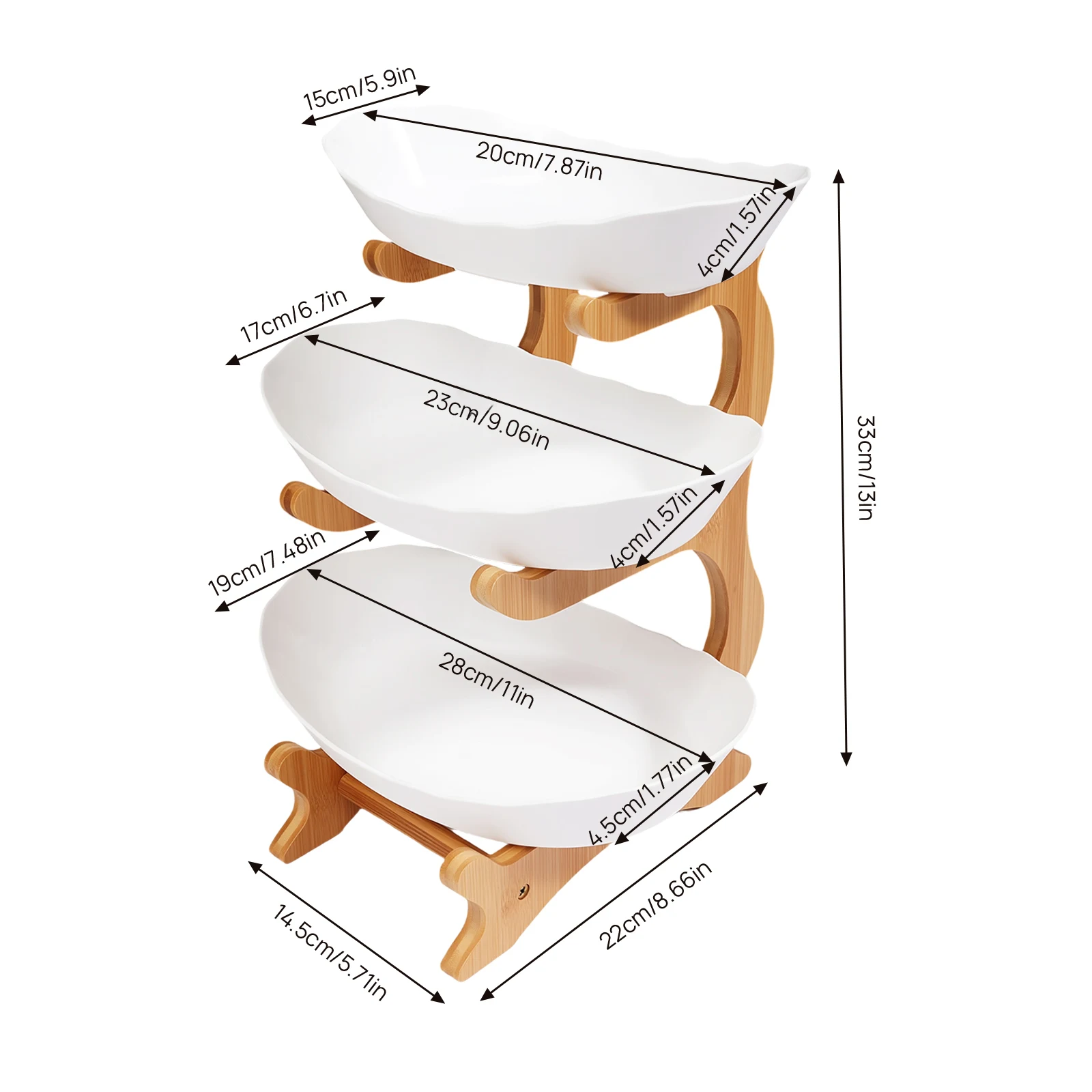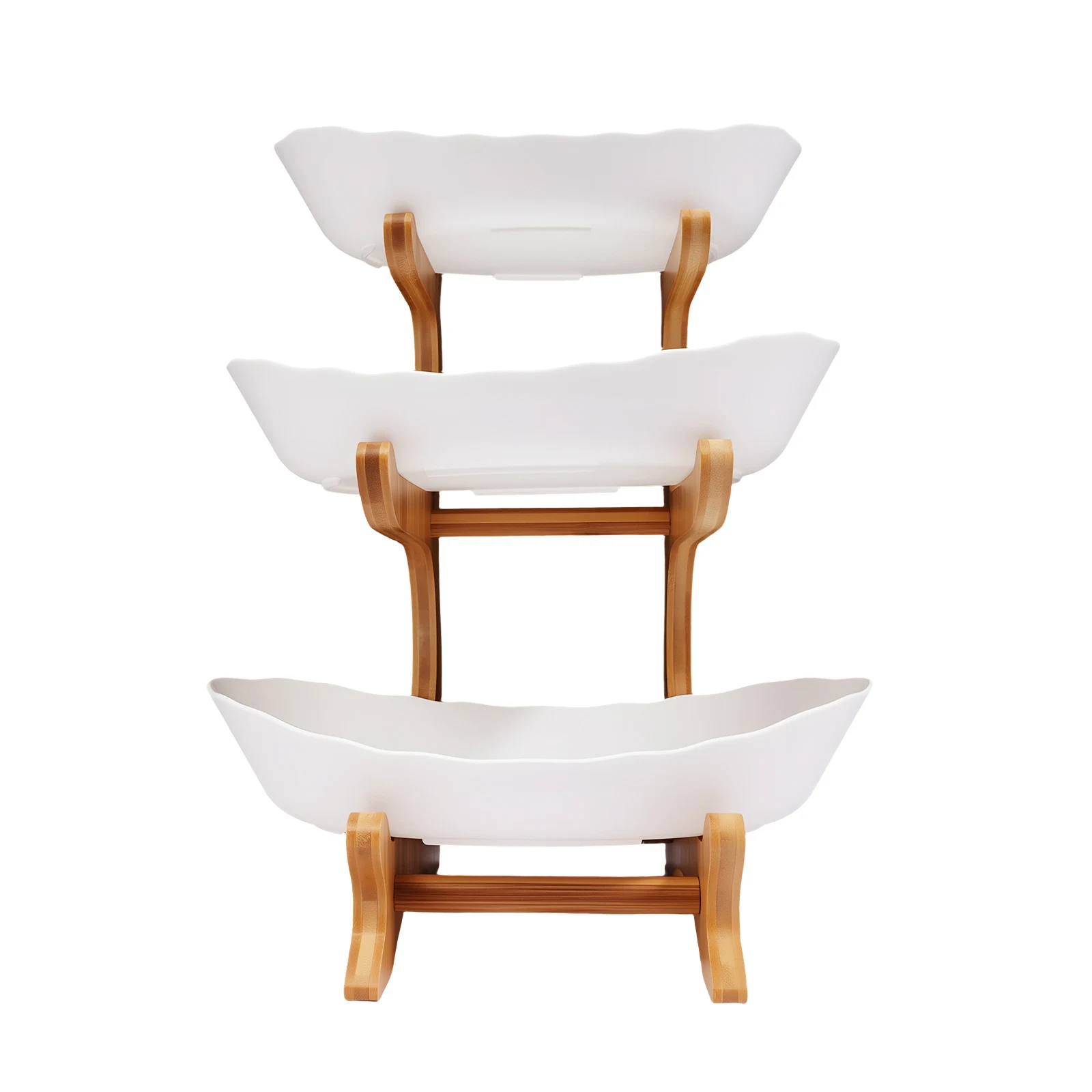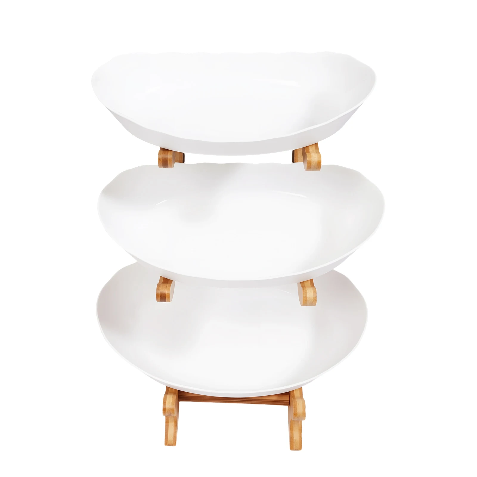 3-Tier Fruit Plate,Snack Dessert Cake Tray Plate Rack for Party Wedding,Fruit Bowl W/ Bamboo Wood Stand,Candy Dish Cake Stand