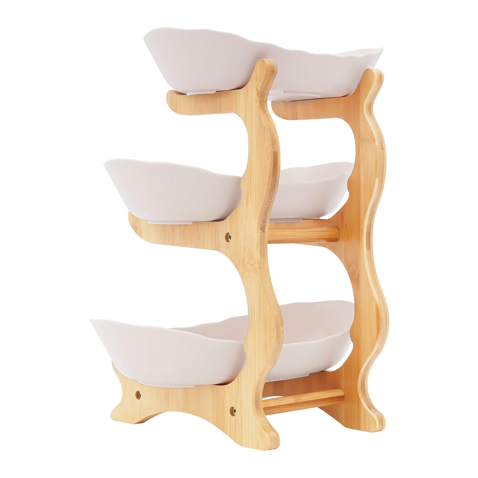1* Three-tier Fruit Bowl with Bamboo Wood Stand