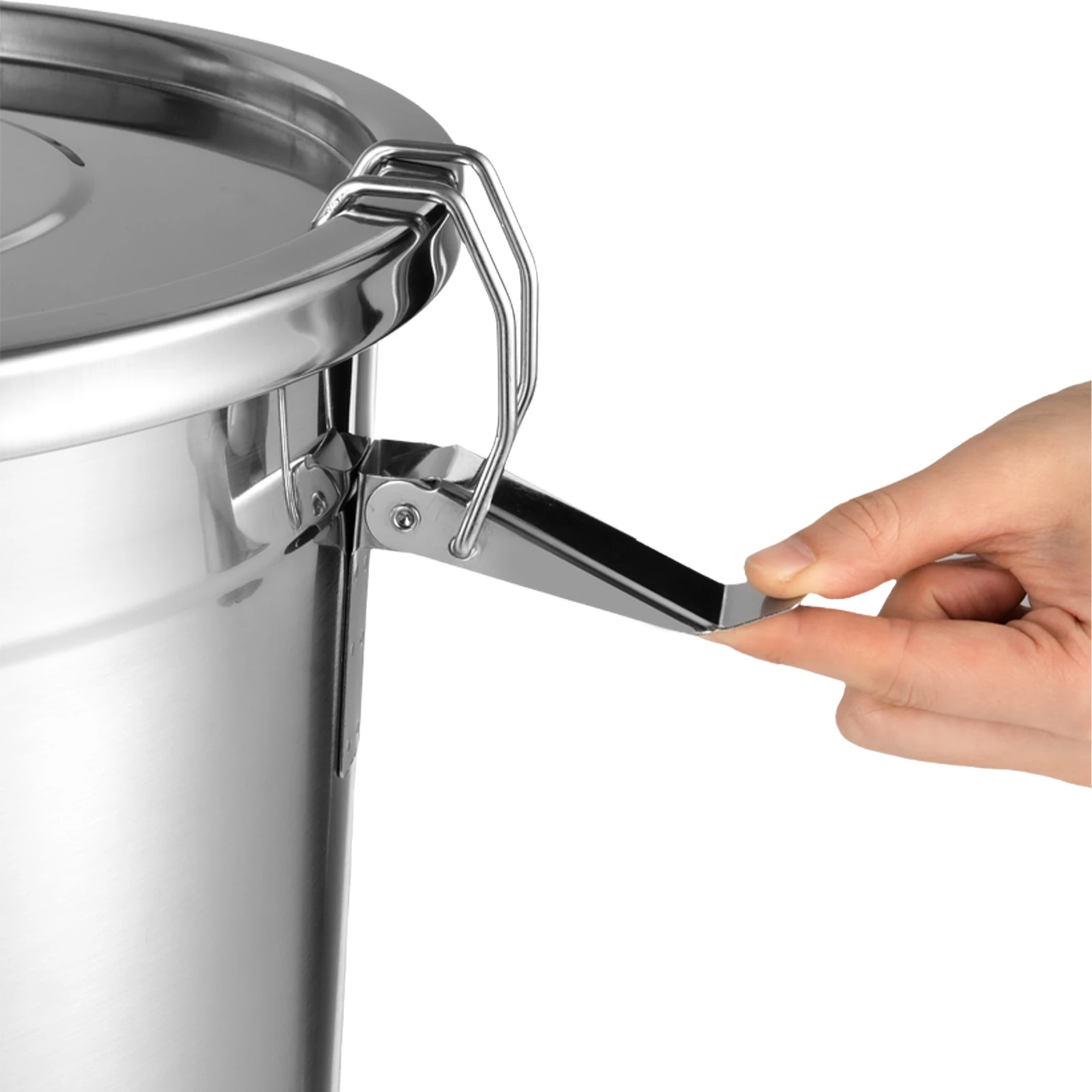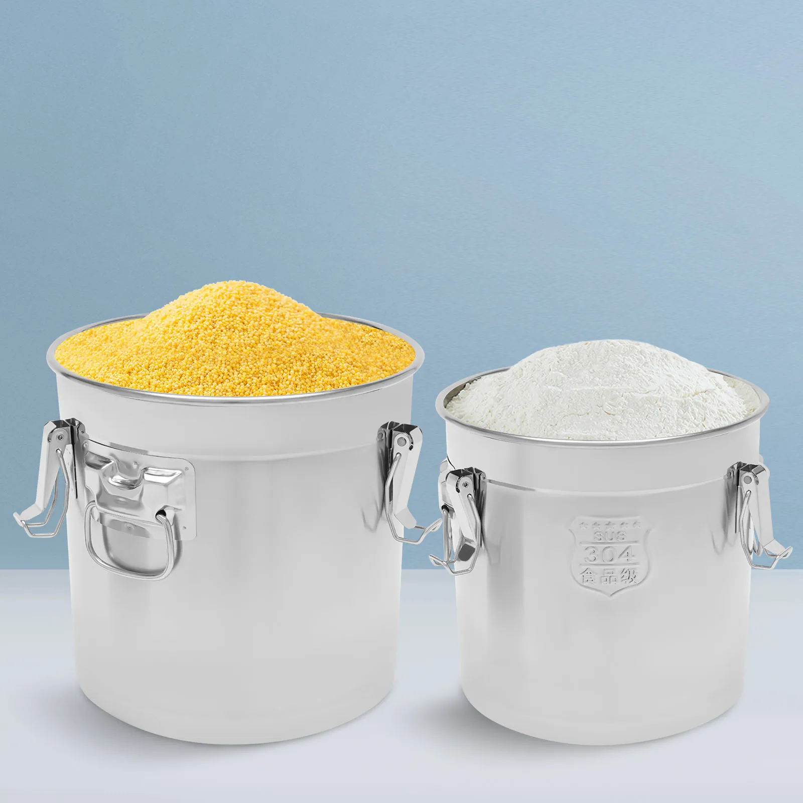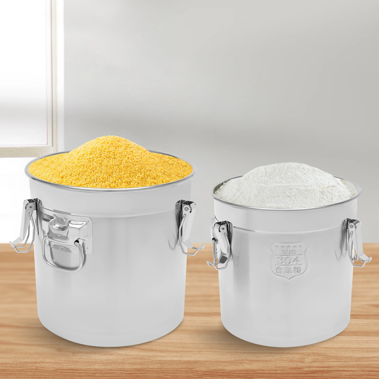 Durable and Sturdy: The storage bucket has a food-grade 304 stainless steel body with a thickness of 0.6mm and a polishing process, 201 stainless steel sealing buckles and handles with butt welding, and a high-quality silicon sealing ring, offering durability and sturdiness for this product.