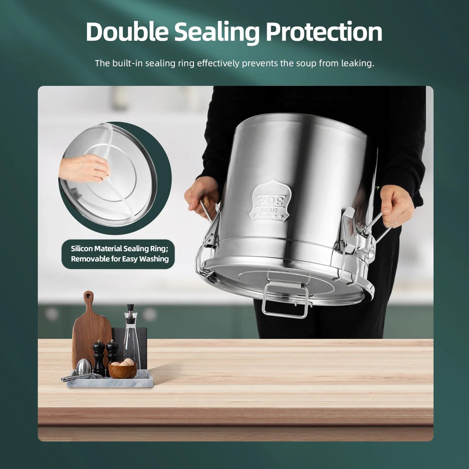 Double Sealing Protection: Three strong sealing buckles firmly lock the bucket body and lid without gaps, preventing mosquitoes and other intrusions. The built-in anti-leakage sealing ring is highly sealed and effectively prevents the soup from leaking.