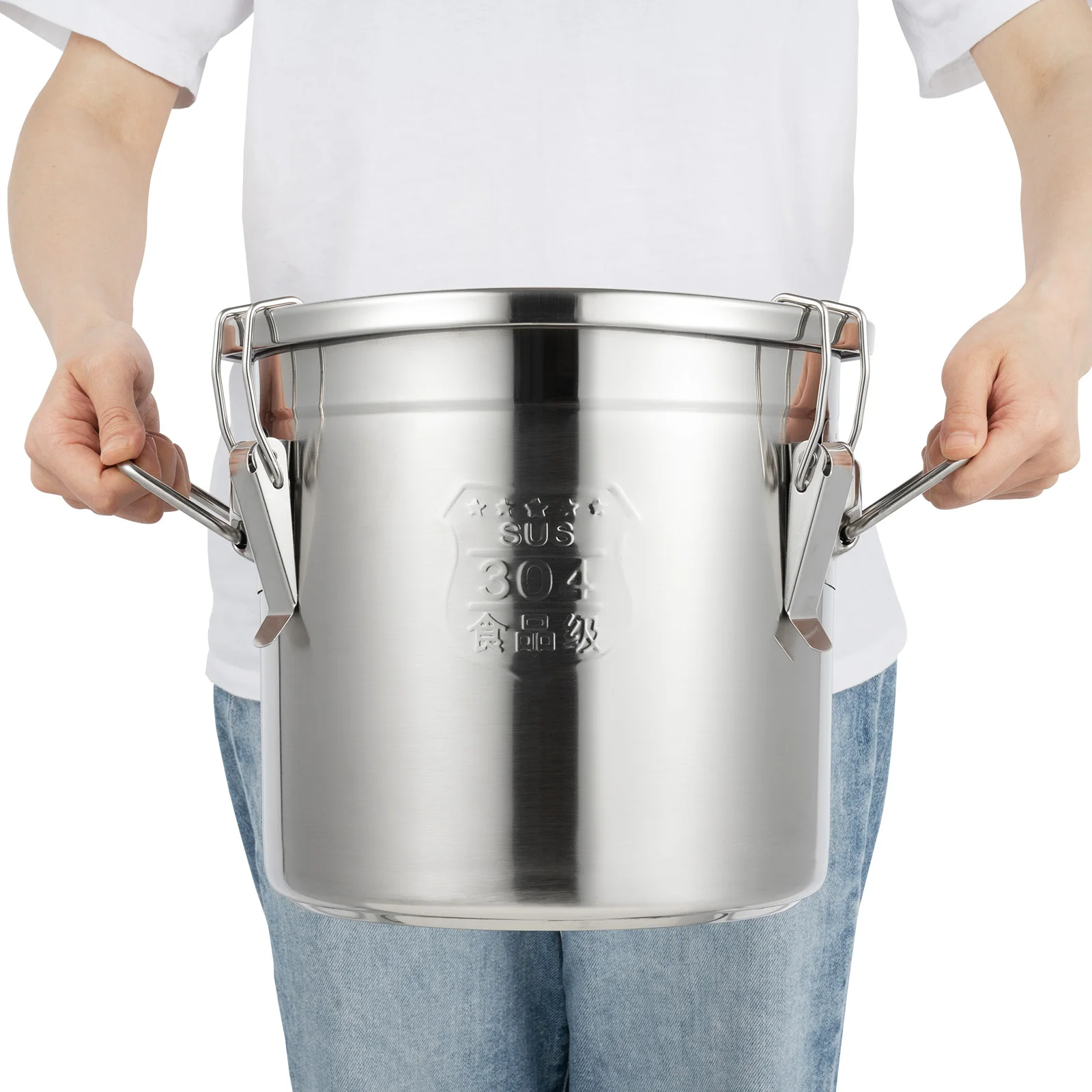 Durable and Sturdy: The storage bucket has a food-grade 304 stainless steel body with a thickness of 60mm and a polishing process, 201 stainless steel sealing buckles and handles with butt welding, and a high-quality silicon sealing ring, offering durability and sturdiness for this product.