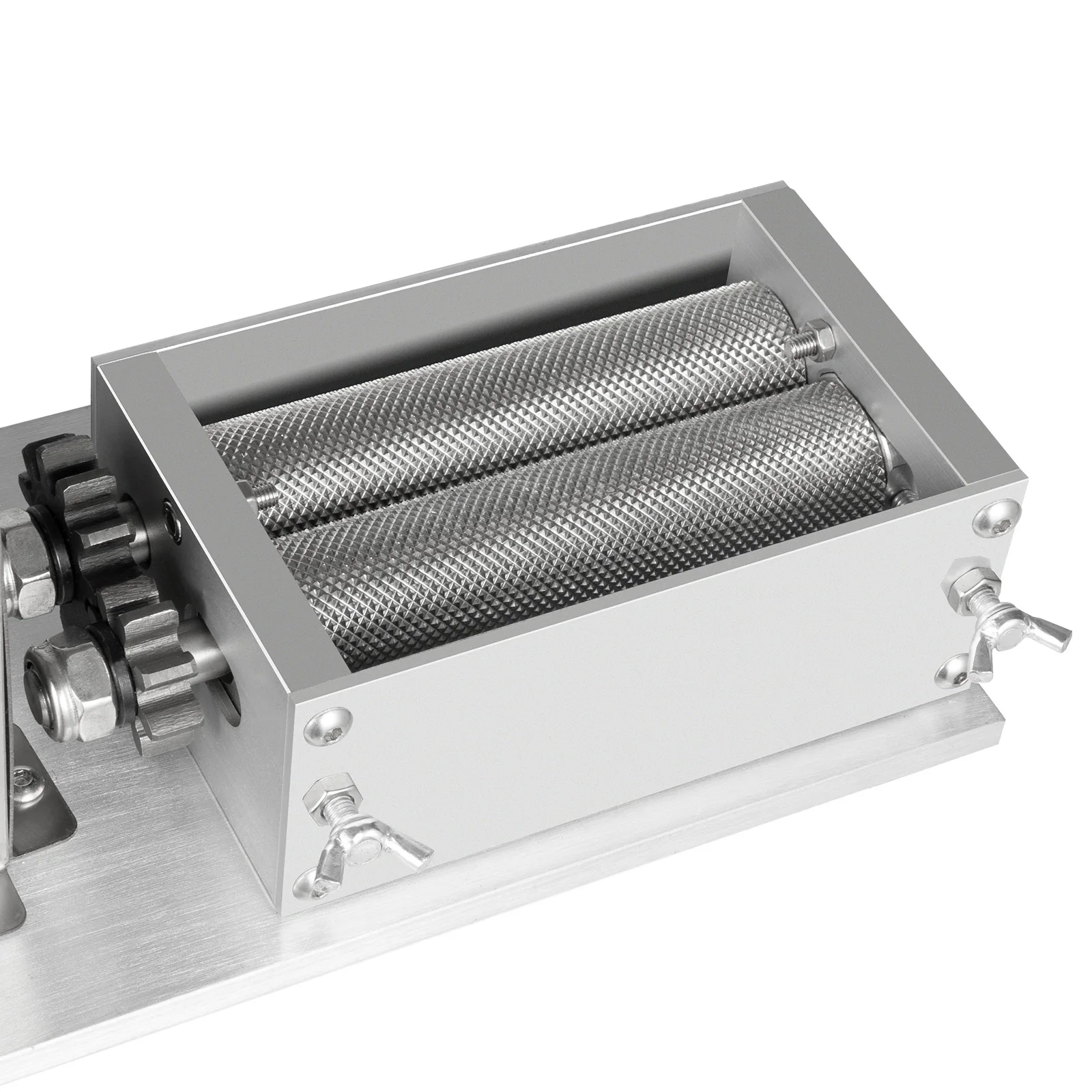 Sturdy & Durable: It adopts premium stainless steel (body+rollers) and Al-alloy (hopper) materials, which are anti-corrosion and sturdy. It is designed with adjustable rollers (0-0.1in) instead of brass bushing, which can meet various needs and extend its service life.