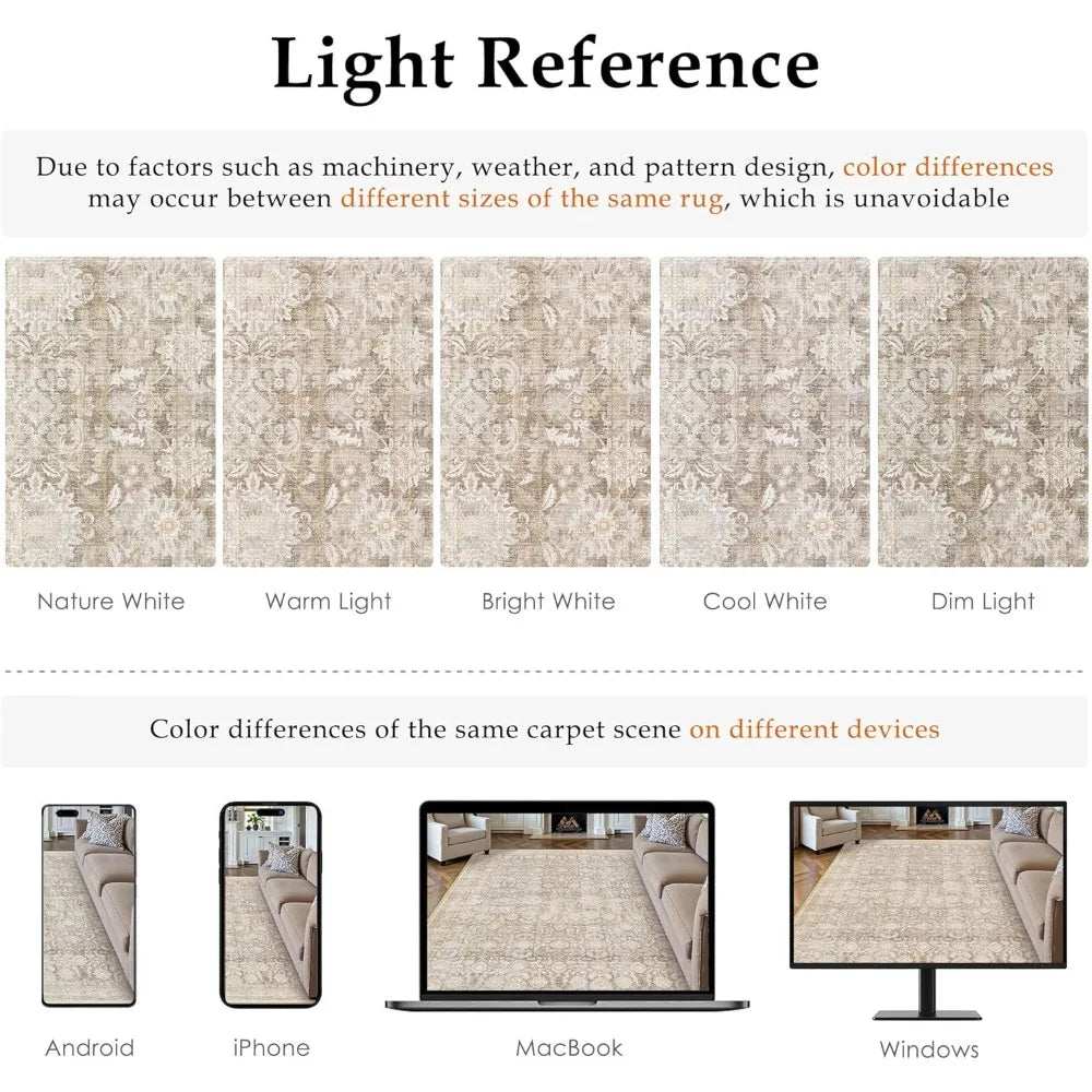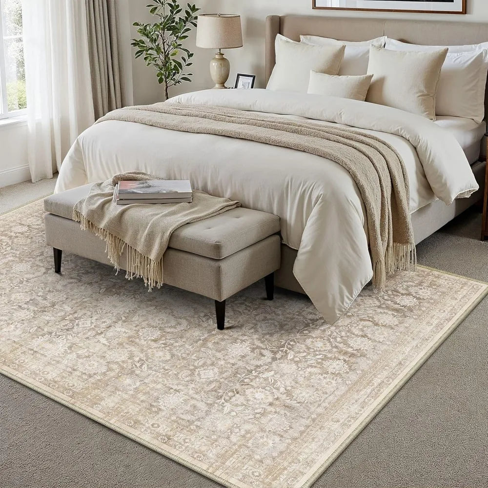 Elegant Floral Area Rug Living Room Low Pile Stain Resistant