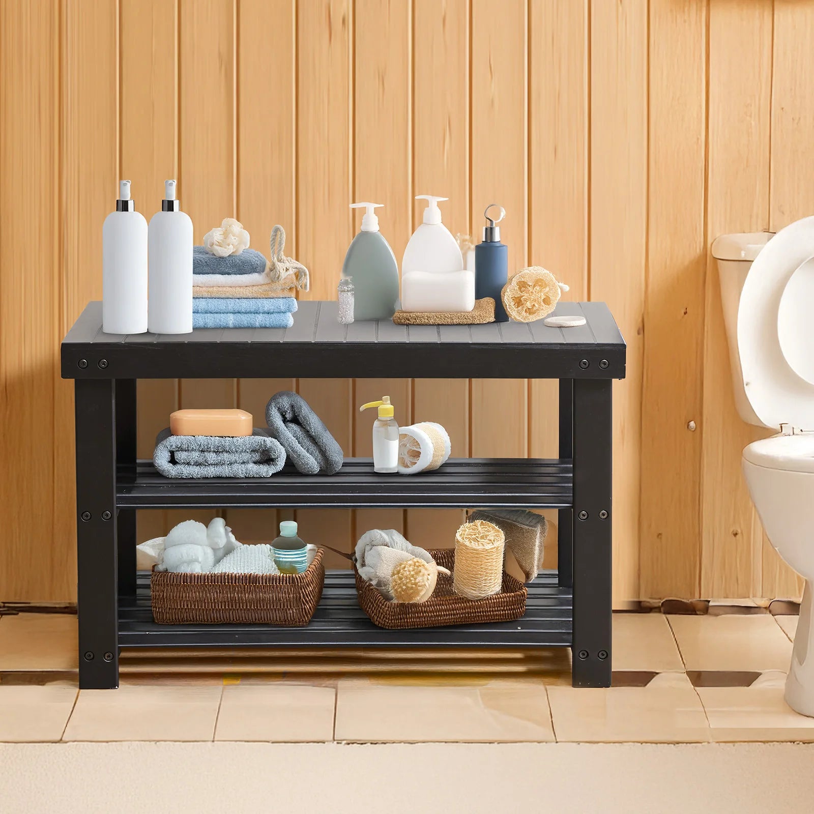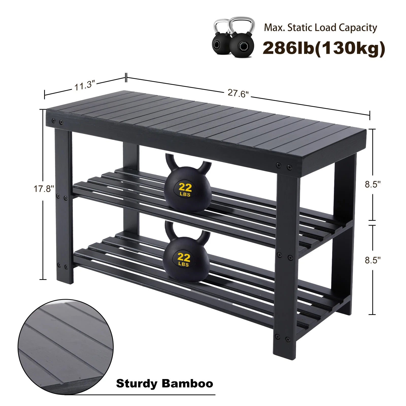 JHK 3-Tier Bamboo Shoe Rack Bench Holds 286 LB