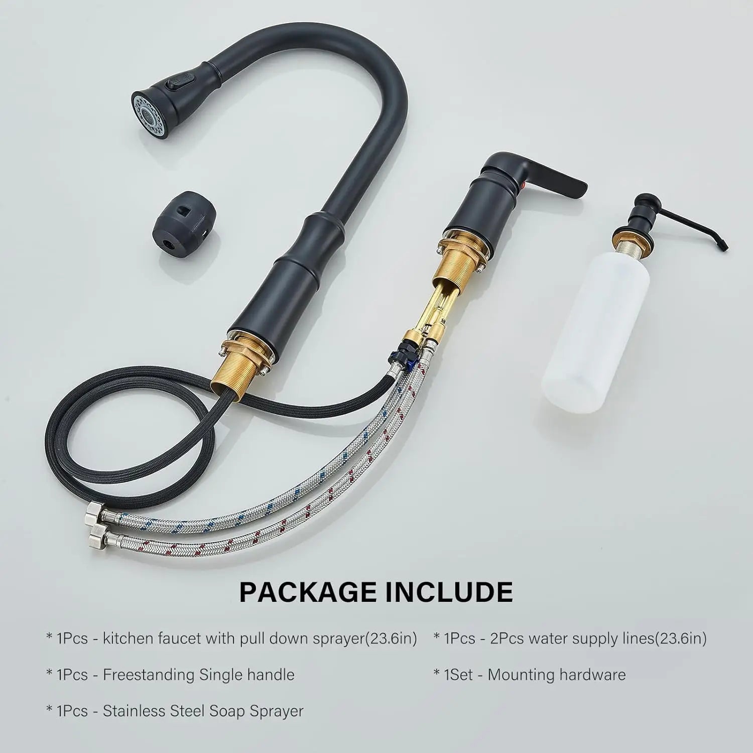 Kitchen Sink Faucet,3 Hole Kitchen Faucets with Pull Down Sprayer,Kitchen Faucets with Soap Dispenser Oulantron 2 Hole High Arc