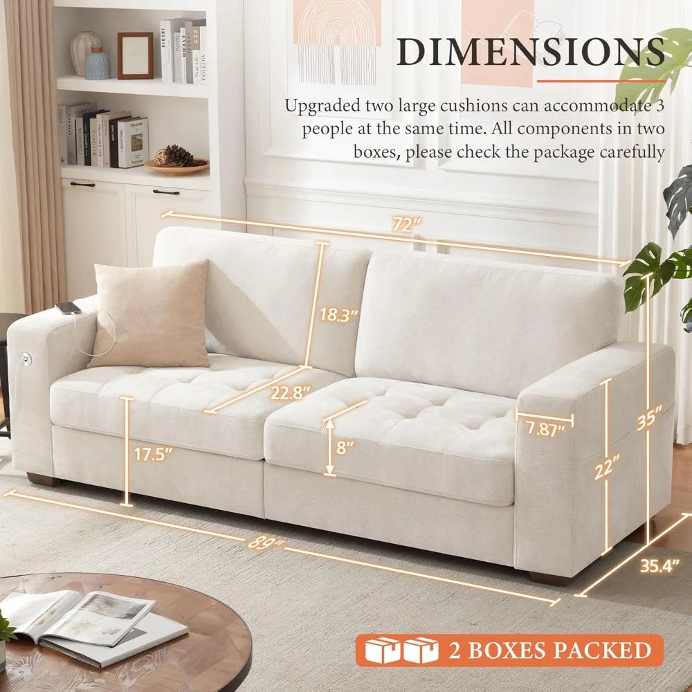 - Premium comfort with breathable chenille fabric and medium‑firm cushions; dimensions give room to relax: 89"W x 35"D x 35"H with a 72" seat, ideal for active households and high-traffic living rooms.