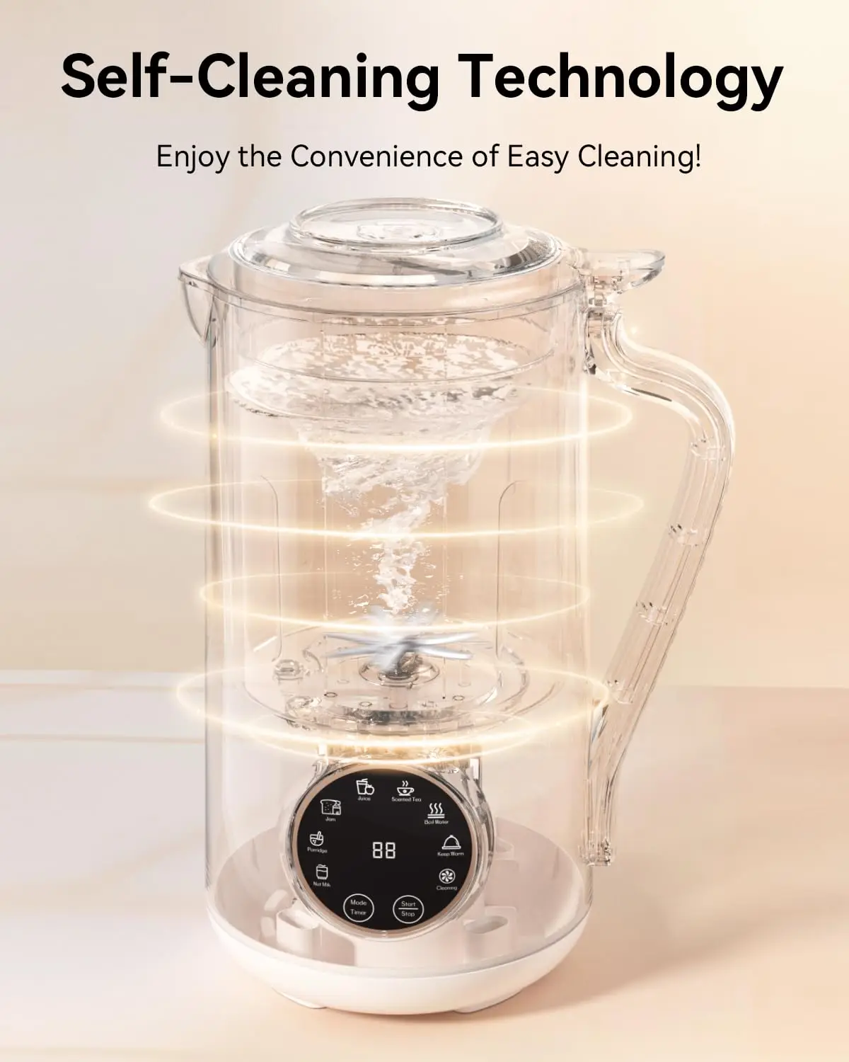 Nut Milk Maker Machine, 35oz Multi-Function Cow Milk Maker, Soy Milk Maker with 10 Blades for Homemade Plant-Based Milk, Oat, So